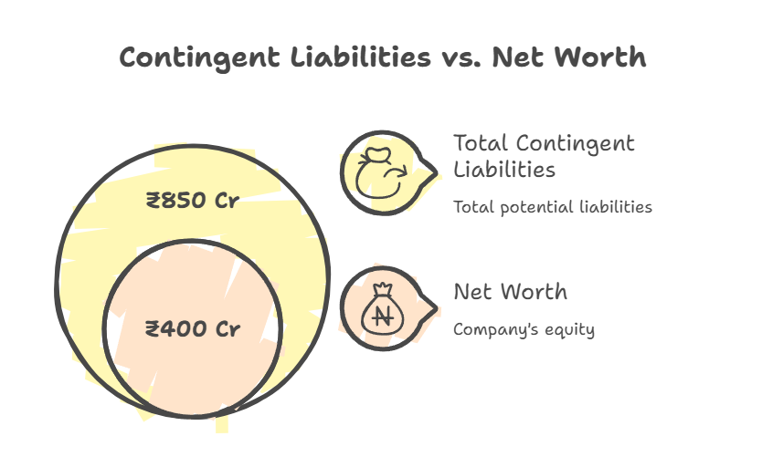 ₹400 Cr equity. ₹850 Cr potential liabilities. Ratio: 213% If even 50% of these disputes go against the company, equity is wiped out.